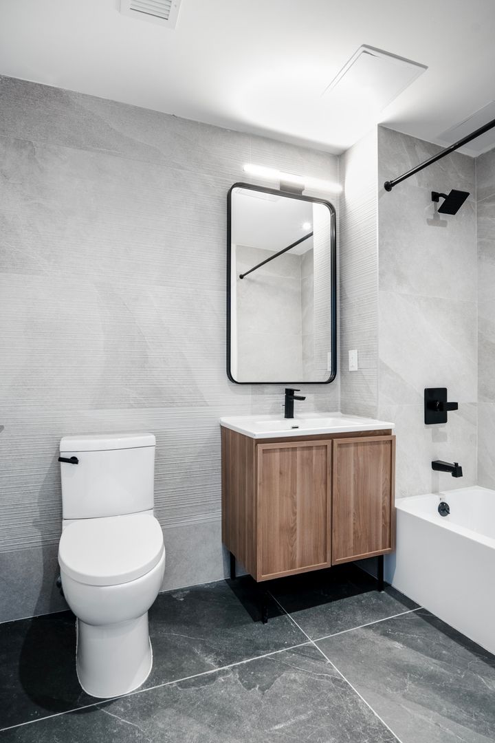 THE HILL, built with stunning designs, boasts 45 rental residences of one-bedroom and two-bedroom apartments. Each of the units were impressively decorated with elegant kitchens of white and light oak-colored cabinetry along with beautiful quartz countertops, and luxury-vinyl-tile flooring throughout the entirety of each apartment. THE HILL is proud to be a GREEN building with energy efficient stainless steel appliances and energy efficient central heating/cooling systems in every unit as well as throughout the entire building. Some apartments also have private outdoor spaces, while all residences can enjoy keyless entry and a comprehensive amenities package which includes a rooftop gym, rooftop terrace, residents’ lounge, on-site laundry, virtual doorman, package room, parking garage, bike room and storage spaces.