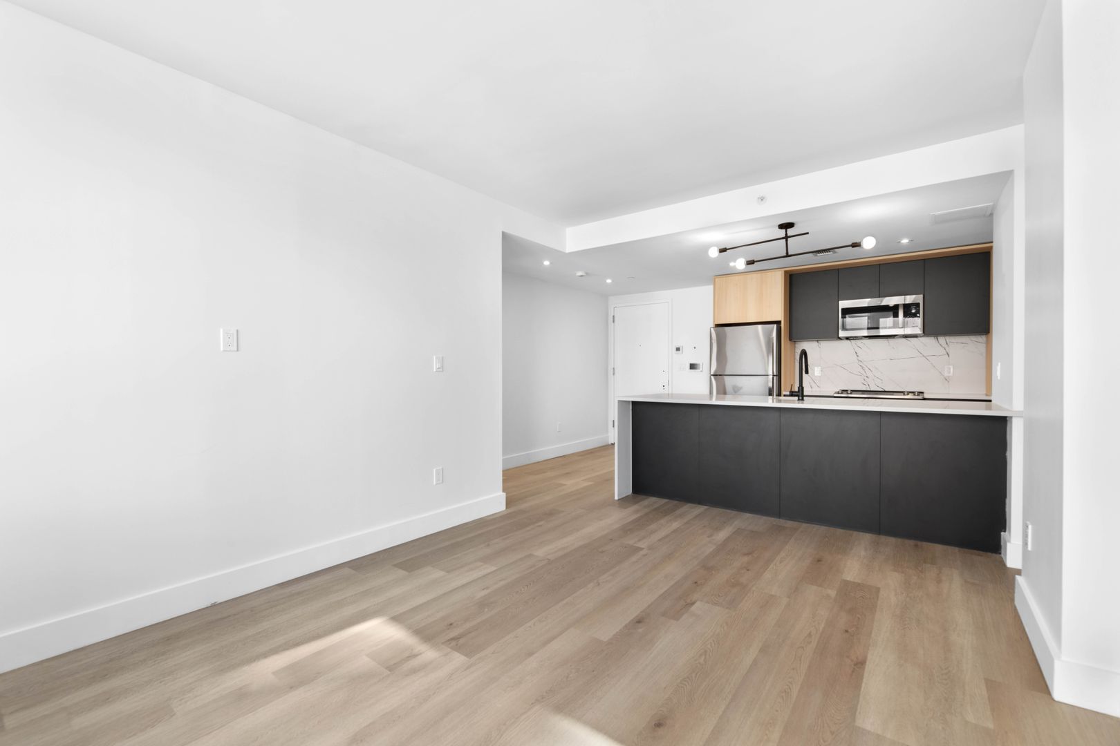 This brand-new home features gracious layouts that are drenched in natural sunlight. Light wooden-tone flooring and opulent walls allows each room to feel open and airy. The contemporary combination of matte black cabinetry, wooden paneling and brilliant quartz backsplash and island is ideal for those seeking modern luxury. Every residence can appreciate convenience with a microwave dishwasher and washer/dryer hookups. The bathrooms at 16FIFTY Madison is fitted with porcelain tiles throughout and black fixtures. And for the fashionistas, there is an abundance of closet space throughout. Select residences are also spoiled with private outdoor spaces, perfect for a moment of fresh air.
